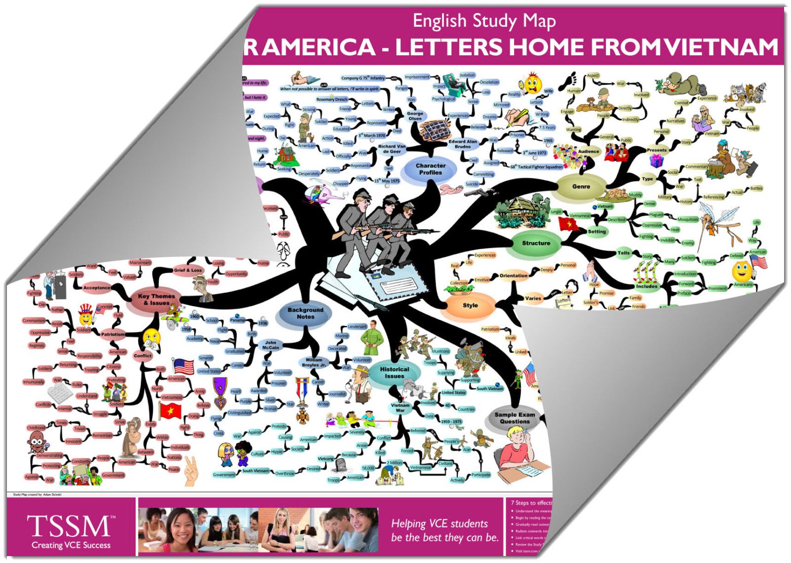 The Study Map for Dear America - Letters Home from Vietnam is an A2 size concept map written by VCE English teachers.