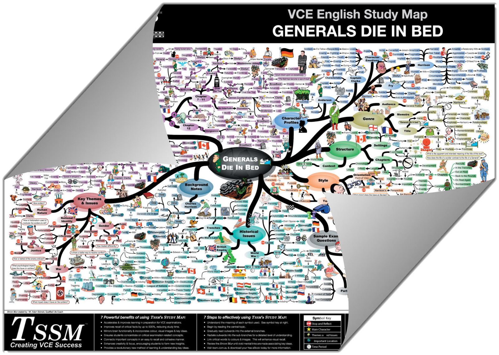 The Study Map for Generals Die in Bed is an A2 size concept map written by VCE English teachers.