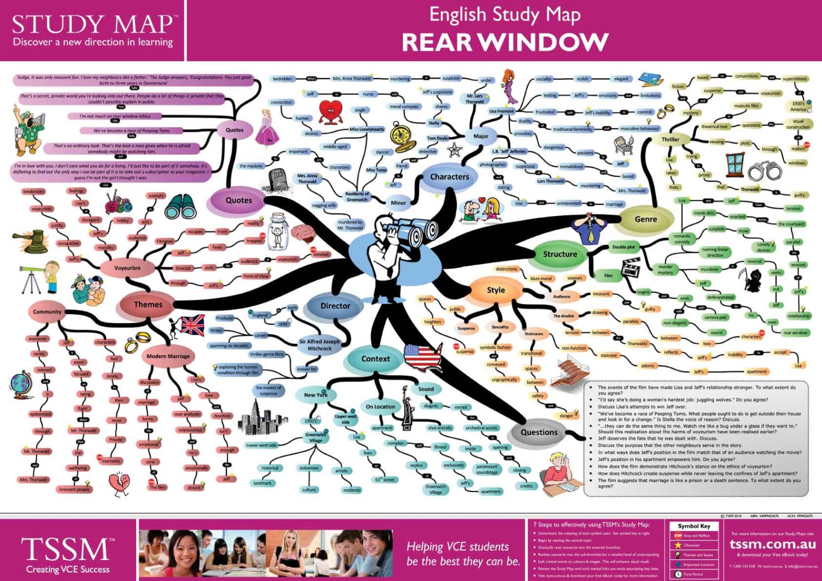 The Study Map for Rear Window is an A2 size concept map written by VCE English teachers.