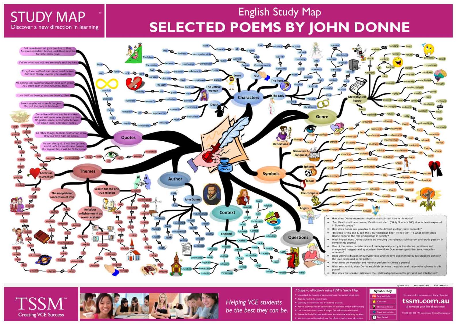 The Study Map for Selected Poems by John Donne is an A2 size concept map written by VCE English teachers.